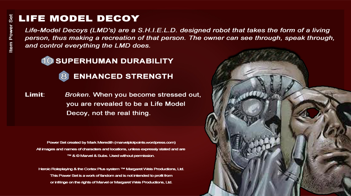 8 comments on “Item Power Sets: Life Model Decoy, Nick Fury-Issued Kree Tech Armor, Failsafe
