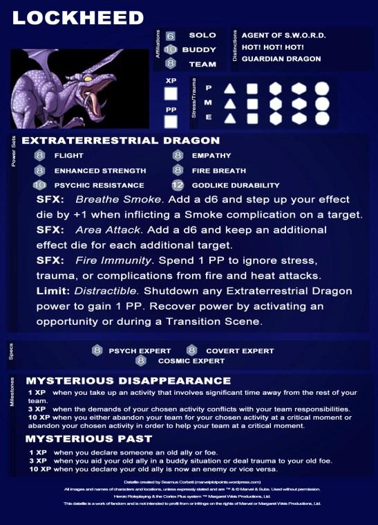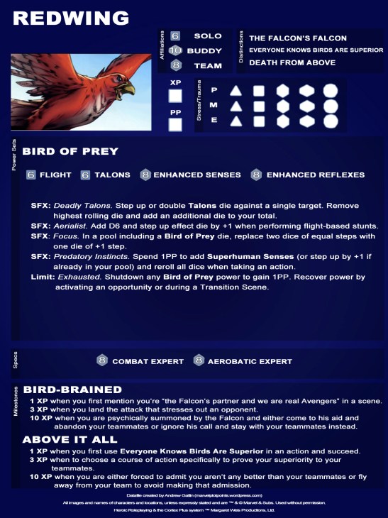 Today’s datafiles are for the Winged Division of the Pet Avengers: Lockheed and Redwing!