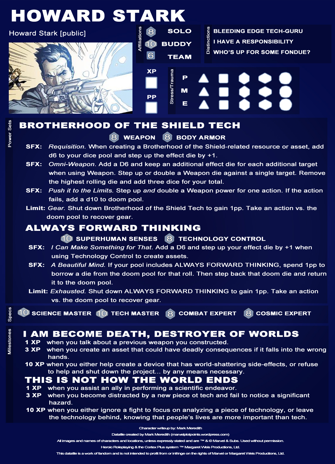The brilliant Howard Stark is a bit of an enigma: He has never been prominently featured in Marvel comics, mostly being alluded to and spoken of in the comics. Recently, in Iron Man, he was fleshed out more in the introduction of Arno Stark (you can read about that whole convoluted mess on your own). In Hickman’s S.H.I.E.L.D. series, we see him as a confident agent of the Brotherhood of the Shield, helping defend the Earth against a wide variety of threats.