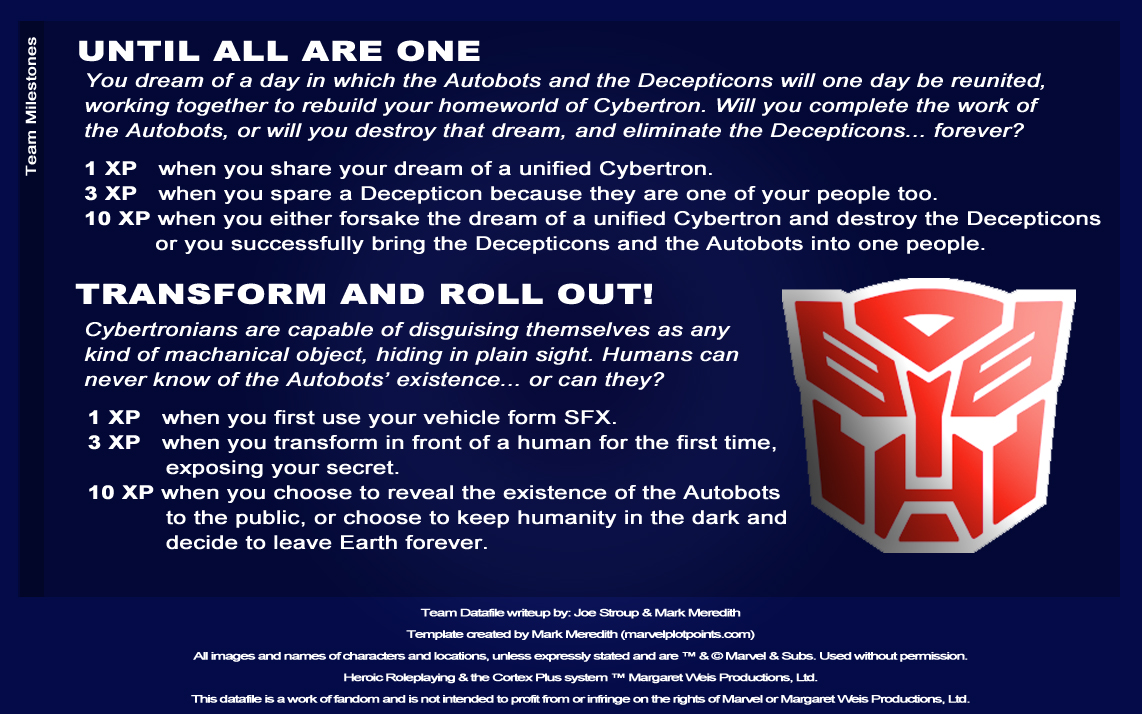 Team Milestones: Autobots