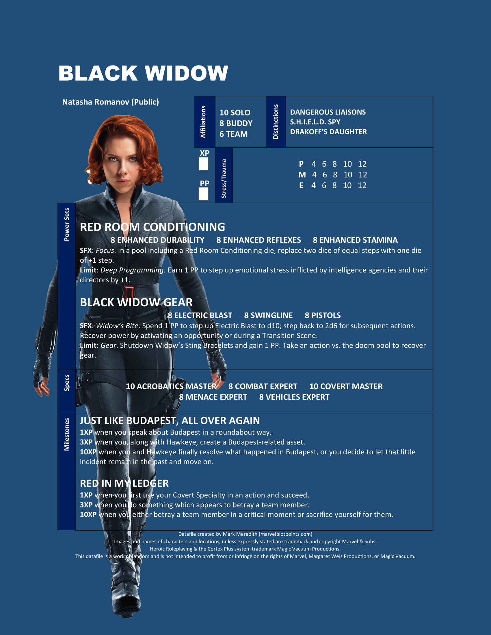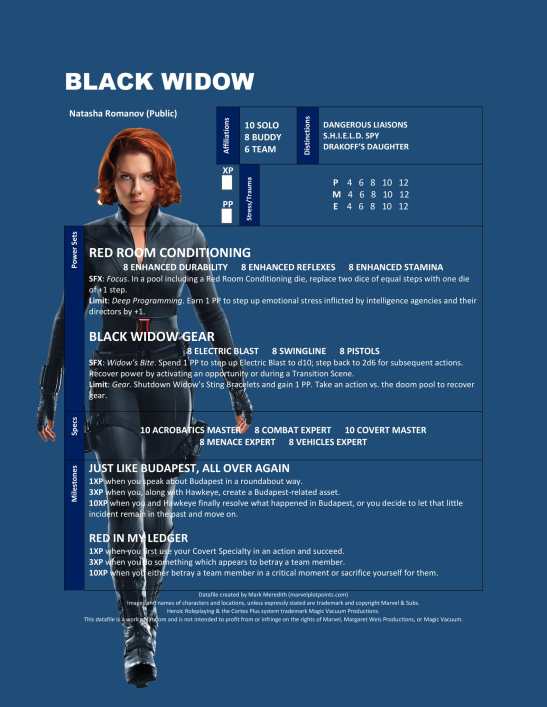Natasha Romanov has a lot of ghosts in her closet, and as one of two lone unpowered humans on the team, she has to prove herself more than anything. This Datafile is full of deep secrets just waiting to be uncovered.