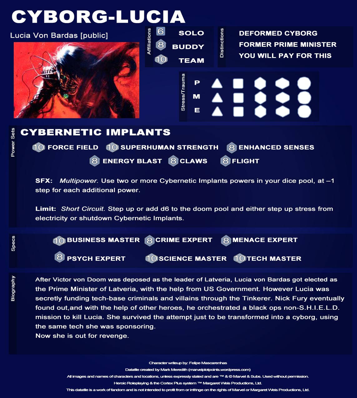 I’ve been working on some supervillain datafiles of my own, and am presenting them here. Click to enlarge any image.